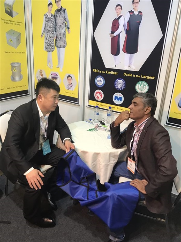 醫用X射線防護系列制品,簡稱X射線防護系列制品,材料由天然橡膠、黃丹粉經加工外包布制作而成。防護系列制品鉛當量:0.25mmpb、0.35mmpb、0.5mmpb。鉛膠衣就是X射線防護系列中的一種。