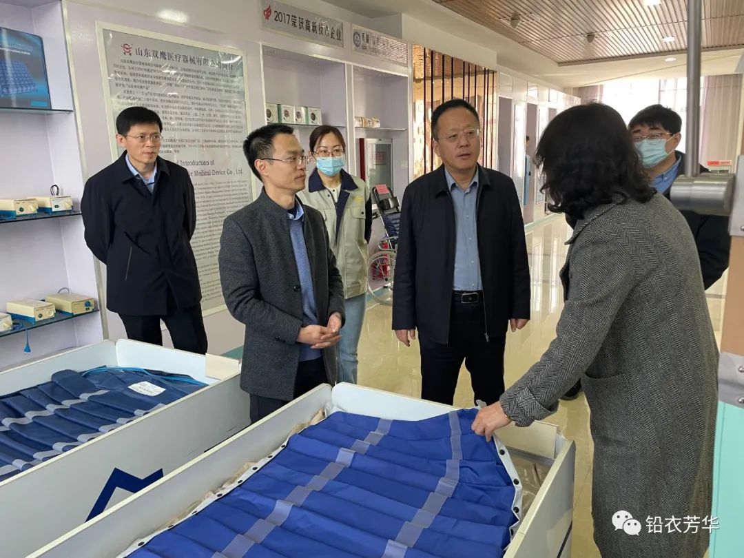 2023年3月17日下午,煙臺市衛生健康委員會黨組副書記、副主任包偉、龍口市衛健局局長王繼周等一行7人蒞臨山東雙鷹醫療器械有限公司開展調研走訪工作,公司總經理戚瑋向其簡要介紹了公司整體行業發展趨勢及戰略規劃目標、產品介紹等概況。