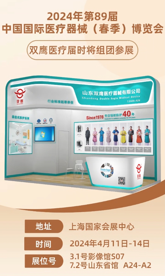 2024年4月11日-14日,2024年第89屆中國國際醫療器械(春季)博覽會在上海國家會展中心隆重舉行,屆時雙鷹醫療在3.1號影像館S07、7.2號山東省館A24-A2展位恭候您的光臨!