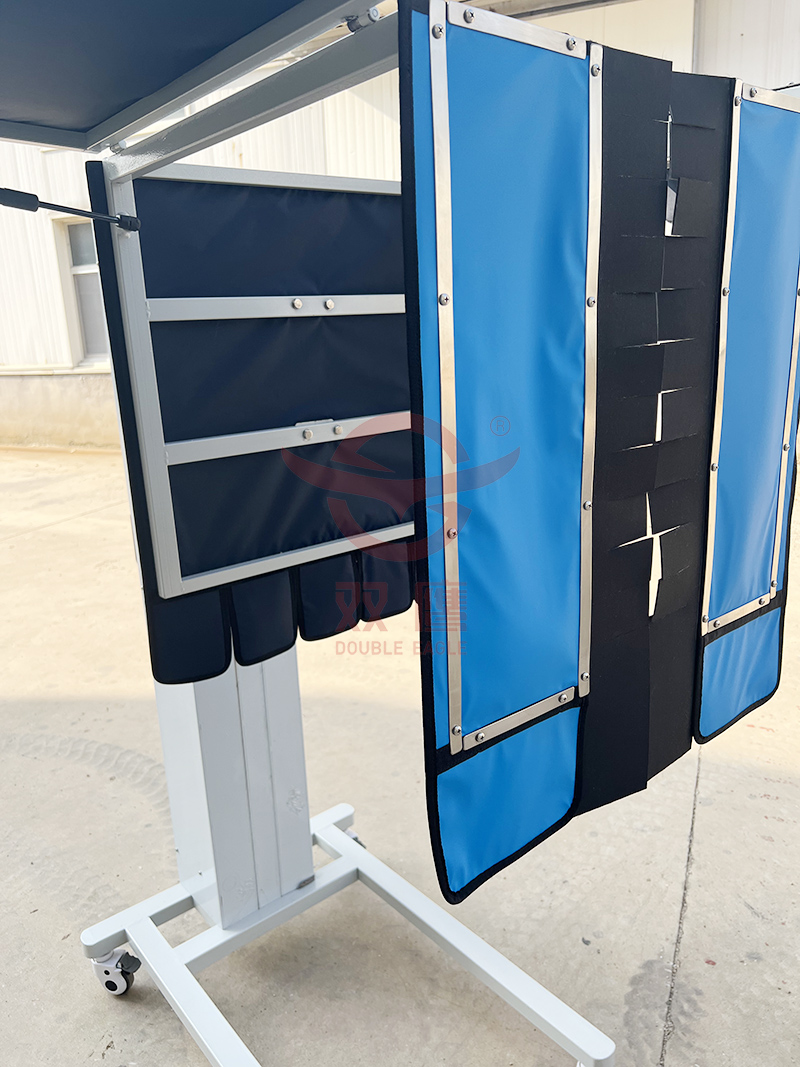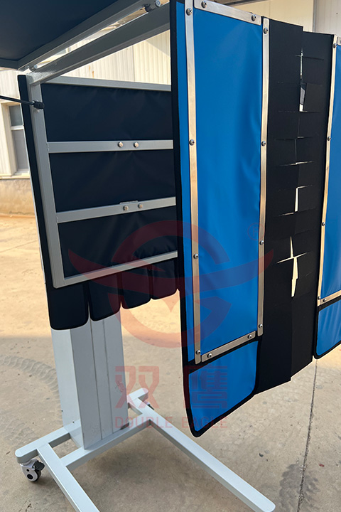 防護簾是由鉛橡膠和鋁型材經過加工制作而成的,鉛當量一般為0.5mmpb.