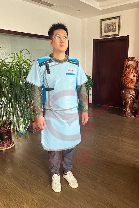操作完成后,應把X射線防護服平放,或用鉛衣架掛起,不能折疊,以免長期折疊產生露線現象。